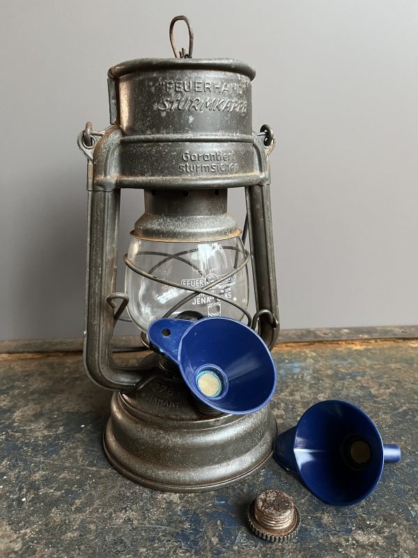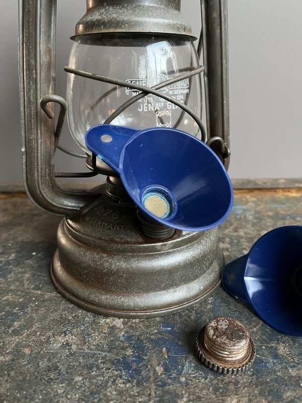 Petromax trechter zeef blauw. Een praktische trechter voor het vullen van lampen met kerosine / petroleum.